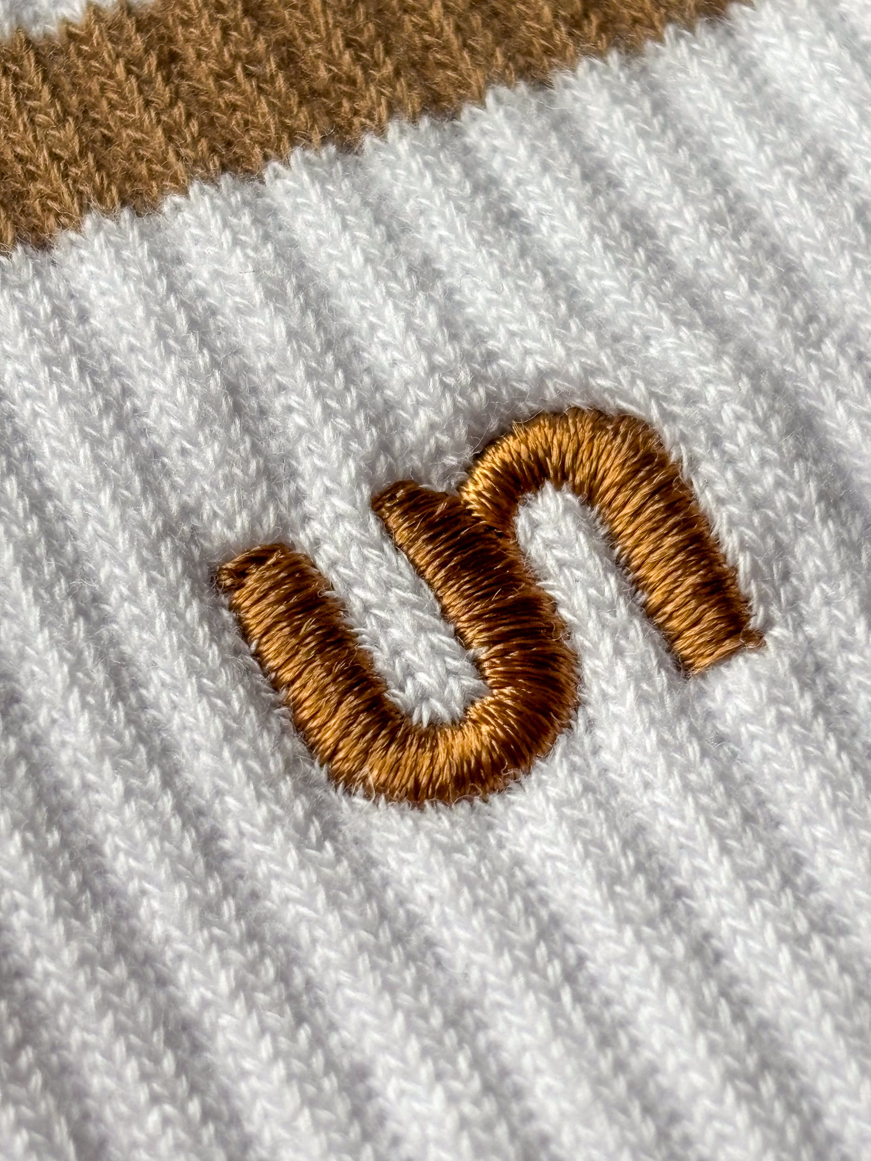 Two-tone athletic strips. Tonal logo embroidery. Just enough.