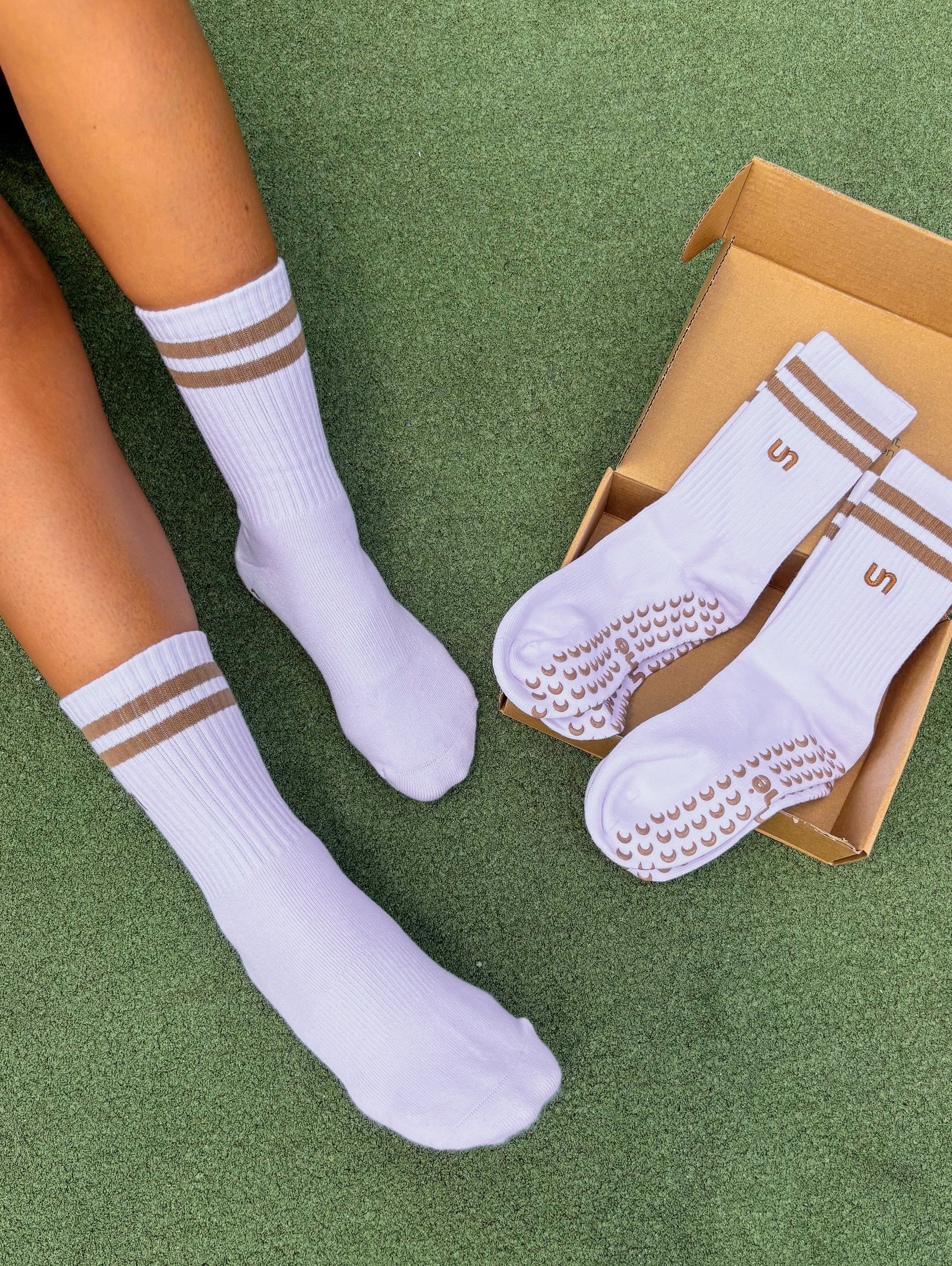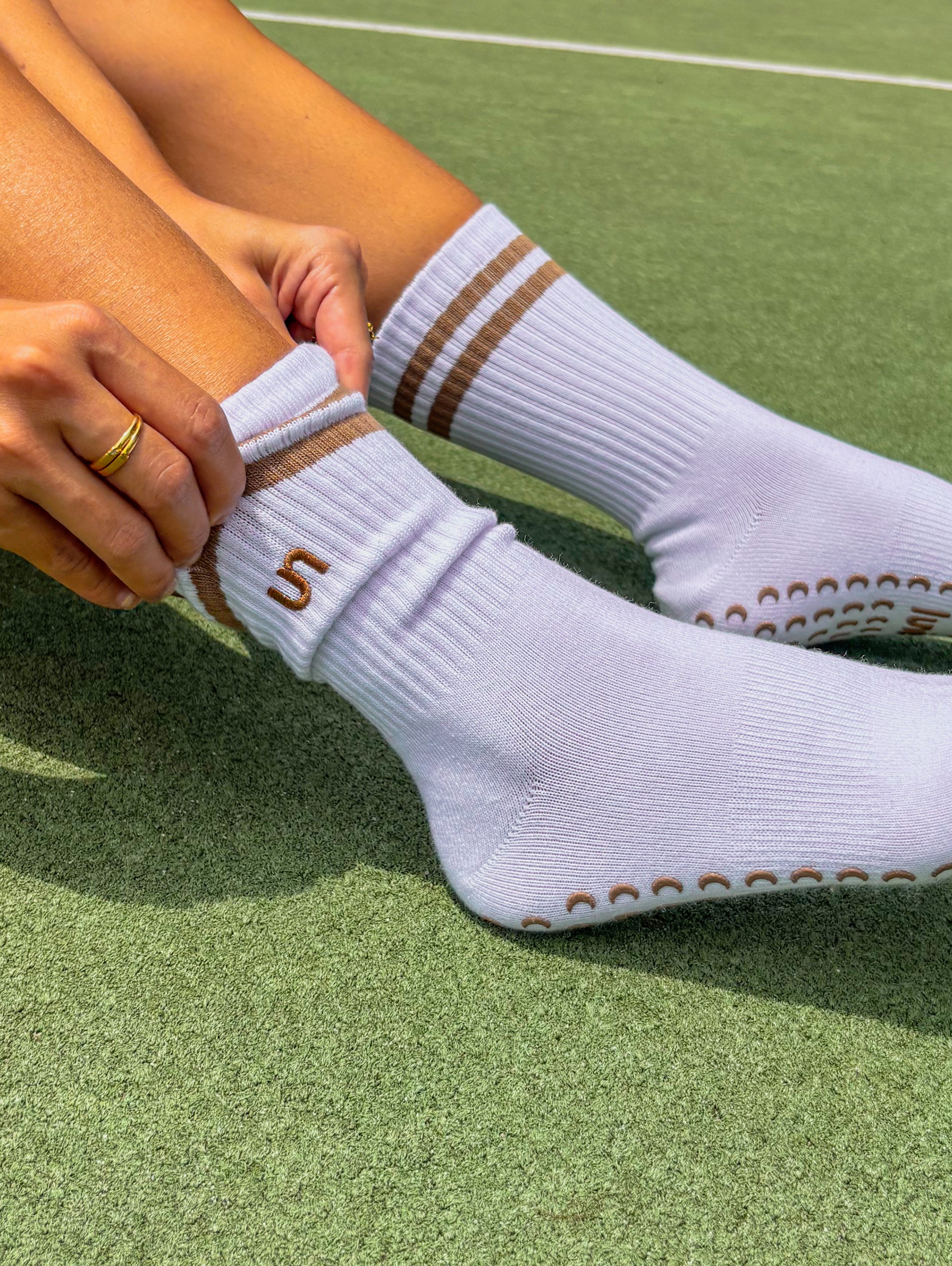 Part of our capsule collection, this edition of the Luné grip socks (comes in one size S-M) is designed for slow, intentional movement — Pilates, yoga, barre or just your quiet morning routine.